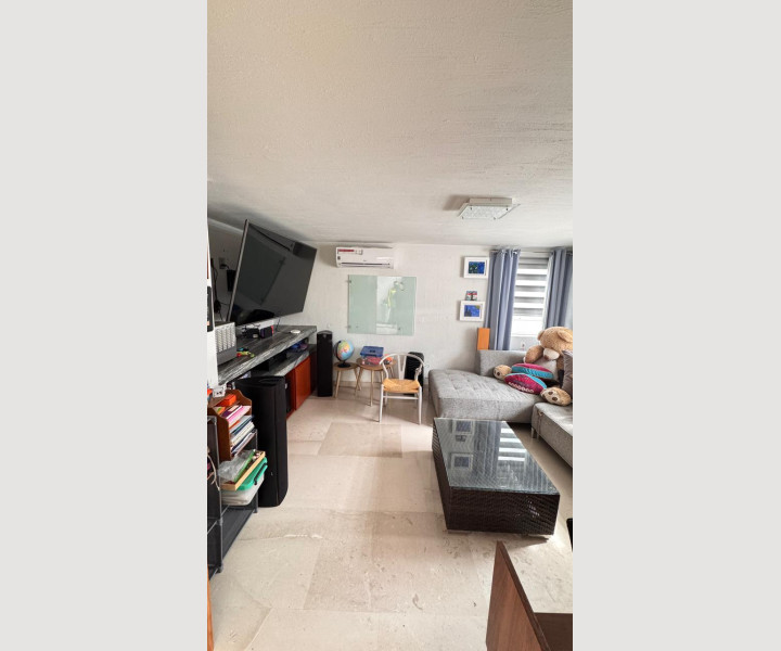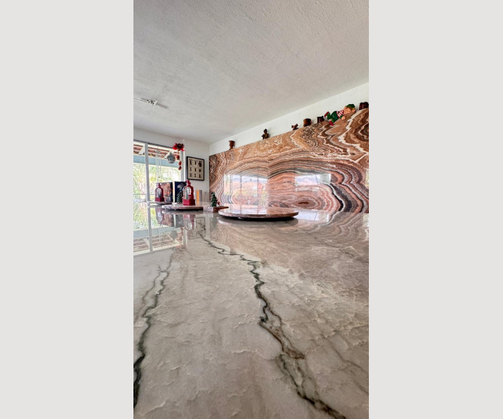 En su interior destacan sus pisos de mármol fosilizado de 2 cm en formatos largos importado desde India, un acabado único que aporta elegancia y carácter. Cuenta con 4 recámaras, un loft independiente con preparación para cocina, estudio, oficina, cuarto de servicio y dos bodegas muy amplias.