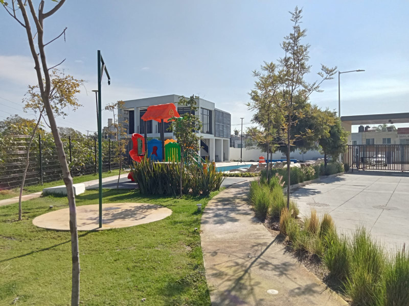 Hermosa casa habitación ubicada en una de las mejores zonas en Zapopan, cuenta con cochera para 2 autos, cocina integral con barra desayunador, sala, comedor, 2 y 1/2 baños con cancel de cristal templado y lava manos con granito, 2 amplias recámaras con clóset, la principal con vestidor, muy buena iluminación natural, acabados de muy buena calidad, además el fraccionamiento cuenta con áreas verdes, parque para mascotas, casa club con alberca, gimnasio, zona de juegos infantiles, etc. Seguridad las 24 HRS y está cercana a iglesias, escuelas, parques, tiendas de conveniencia y plazas comerciales.