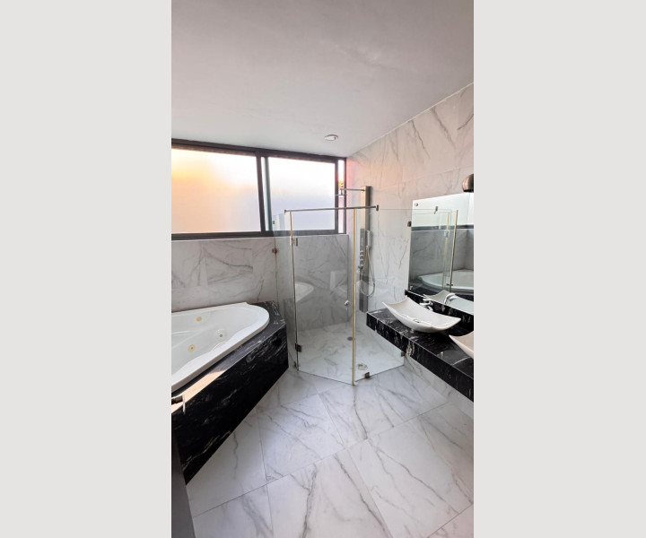 La cocina se integra de forma perfecta con el área social, ideal para convivencias y reuniones. Además, cuenta con jardín privado con muro decorativo y área verde, perfecto para disfrutar momentos al aire libre. Los baños destacan por sus acabados en mármol, cubiertas de piedra natural, cancelería de cristal templado y un diseño elegante tipo hotel boutique.