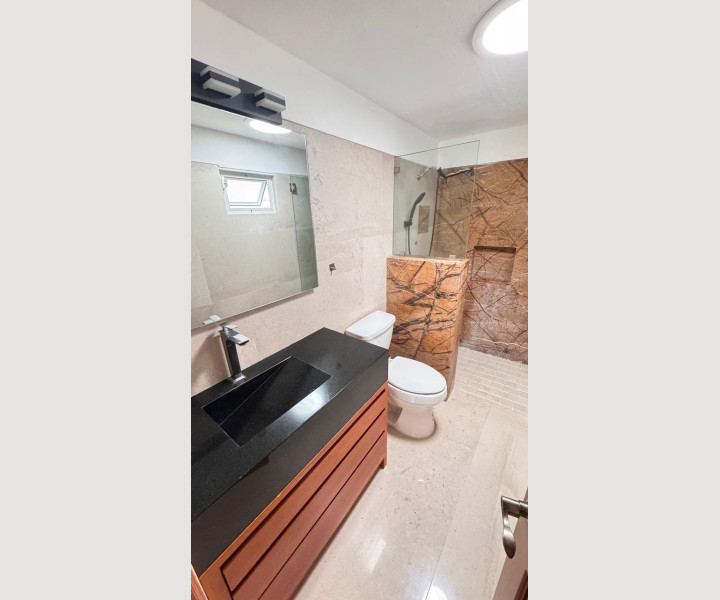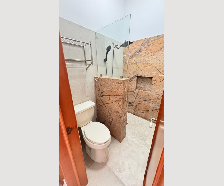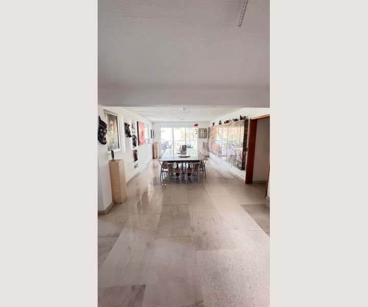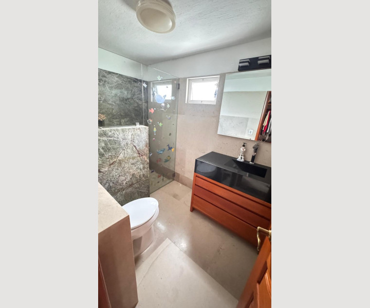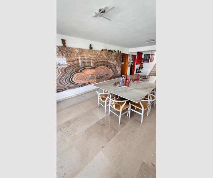 En su interior destacan sus pisos de mármol fosilizado de 2 cm en formatos largos importado desde India, un acabado único que aporta elegancia y carácter. Cuenta con 4 recámaras, un loft independiente con preparación para cocina, estudio, oficina, cuarto de servicio y dos bodegas muy amplias.