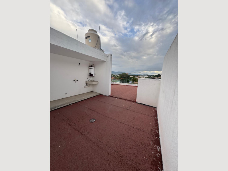 DEPARTAMENTO TIPO LOFT EN CONDOMINIO/PLANTA ARQUITECTONICA: SE ENCUENTRA EN UN SEGUNDO NIVEL QUE CUENTA CON LA SIGUIENTE DISTRIBUCION, ESCALERAS INDEPENDIENTES CON PUENTE AL INGRESO DEL INGRESO PRINCIPAL DEL DEPTO, MEDIO BAÑO, SALA, COMEDOR CON PATIO DE ILUMINACION NATURAL QUE INTEGRA LOS ESPACIOS, COCINA INTEGRAL CON ALACENA ARMARIO, RECAMARA PRINCIPAL CON CLOSET Y VESTIDOR, BAÑO COMPLETO Y TERRAZA DESCUBIERTA, SEGUNDA RECAMARA COMPLETA CON CLOSET Y BAÑO COMPLETO, VISTA AL AREA ILUMINADA DE LA SALA Y TERCERA RECAMARA CON VISTA AL BOSQUE Y BAÑO COMPLETO. ESCALERA A PLANTA DE AZOTEA, AREA DE LAVADO CUBIERTO CON PATIO DE TENDIDO Y UNA PREPARACION PARA EN UN FUTURO CONVERTIRLO EN ROOF GARDEN LE CORRESPONDE DOS CAJONES DE ESTACIONAMIENTOS DESCUBIERTOS (AREA DE COMUN EXCLUSIVO)
